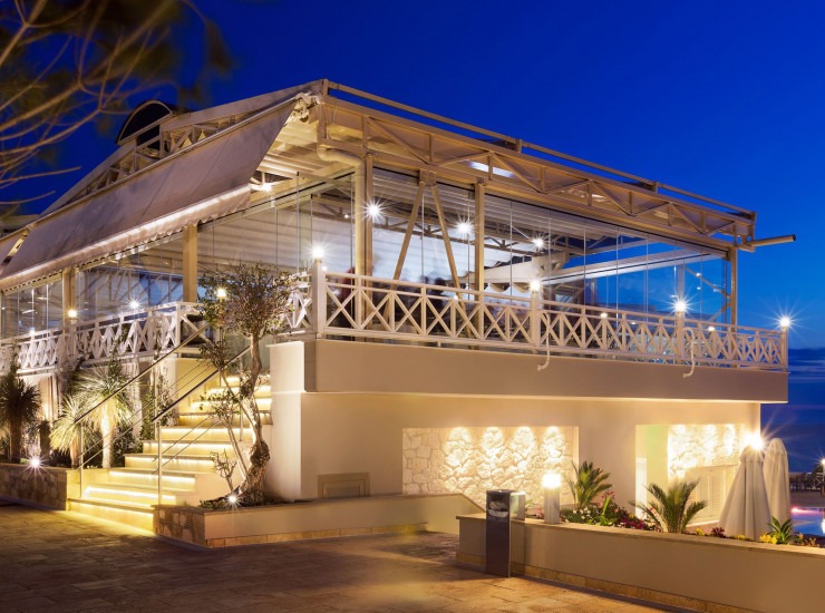 Гурме ресторан "Гермес" (с 19:00 до 00:00) - это уникальное место, где вы можете отведать превосходные блюда средиземноморской кухни от шеф-повара отеля или насладиться коктейлем с видом на гору Афон и наш яркий фонтан.
