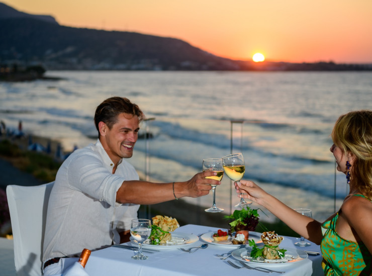 Наш пляжный бар предлагает освежающие коктейли и напитки в течение дня. Наши опытные миксологи предложат вам самые коктейли фьюжн с местным колоритом Крита. Наслаждайтесь критским закатом, критским мохито, критской коладой и многими другими.
