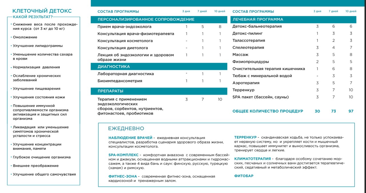Программа проводится по методике разработанной профессором Юрием Левиным. Она направлена на избавление от токсинов.