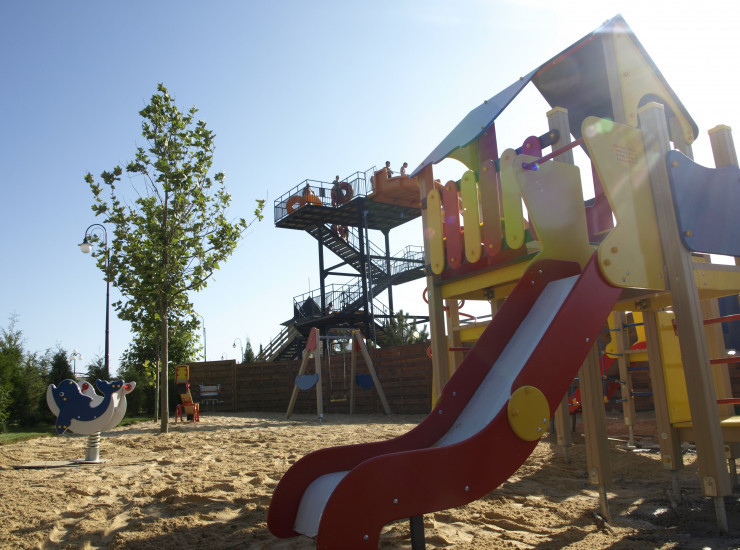 Для маленьких гостей создана детская площадка- настоящий оазис счастья и радости .