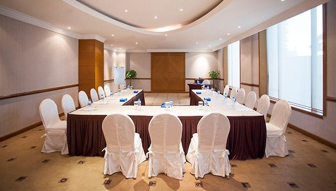 Designed with comfort and elegance in mind, The Boardroom and the meeting facilities provide a quiet and effective atmosphere. Located on the first floor, the 100 sqm conference room can accommodate groups up to 150 persons for catered affairs or meetings. Featuring the finest board tables, plush chairs, LCD projector with latest edition screen and internet access.