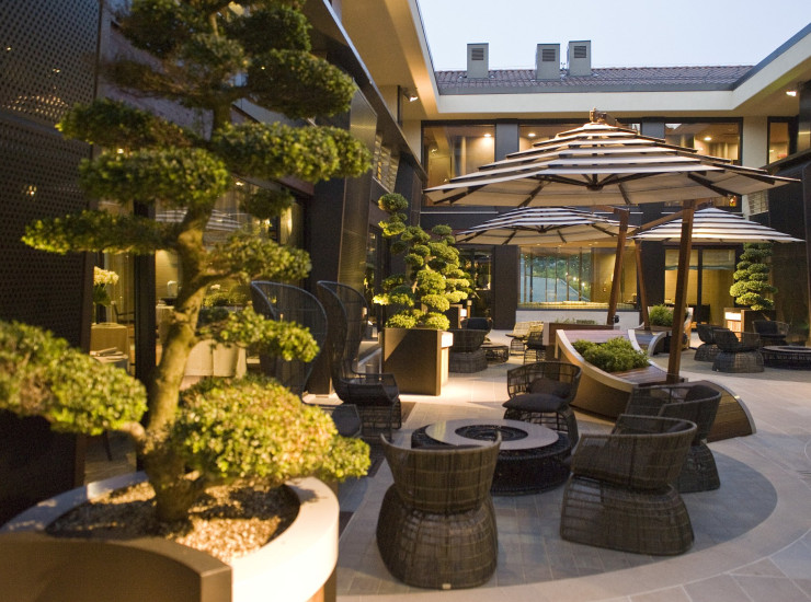 The Sunsì Lounge Bar offers guests an occasion to enjoy a drink in a hospitable area with an uninterrupted view of the surrounding countryside. From coffee accompanied by delicious pastries hot from the oven, to an aperitif served with gourmet snacks in a comfortable environment of forefront design, the Sunsì Lounge Bar also proposes a broad selection of wines, 200 rare spirits and a vast choice of cocktails.