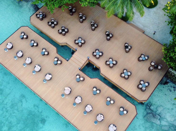 Главный бар отеля. Идеальное место для проведения вечеров под звуки живой музыки или Dj сетов за бокалом любимого напитка и с панорамным видом с палубы на Индийский океан