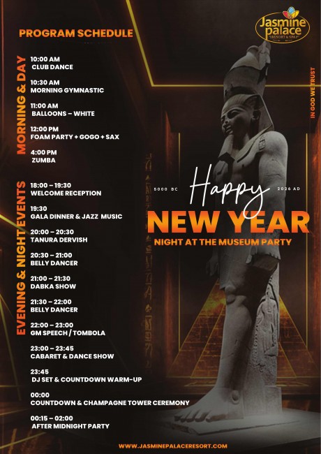 Праздник, солнце и восточное гостеприимство — всё это ждёт гостей отеля Jasmine Palace Resort 5★ на побережье Красного моря в новогоднюю ночь!