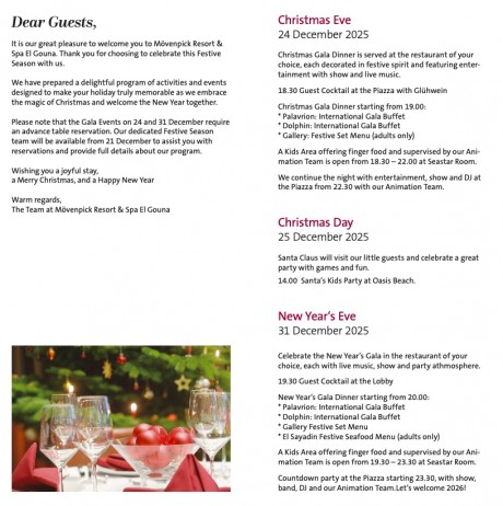 Пожалуйста, ознакомьтесь с программой Нового года и праздничными мероприятиями 2025 в Hilton Salalah Resort по ссылке ниже: