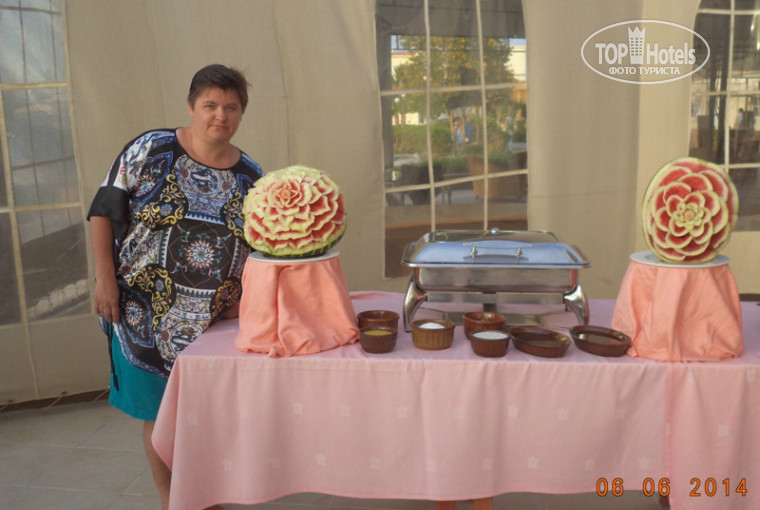 Насчет питания. Голодными мы не были. Блюда в основном тушеные, печеные, вареные. Были картофель, рис, макароны, фасоль, бобы, рыба, из мяса - курица, баранина, печенка, гуляш. Много салатов. Большой выбор сладостей и на завтрак, обед, ужин. На завтрак в основном были яйца (жареные, вареные), яичница, омлеты, хлопья, тосты, салаты. Есть детский стол с детским меню, но для очень маленьких детей он, наверное, не подойдет. Из фруктов были апельсины, мандарины, гуава, дыни, арбузы, грейпфрут. Делали барбекю - один вечер из мяса, через день - курица. Очень вкусные джемы, мы с ними ели блинчики, олашки, и просто чай пили. Посетили итальянский ресторан, но половина блюд там была из основного ресторана. Мы думали нам принесут пиццу итальянскую, спагетти с соусами и другую итальянскую еду, а принесли какой-то суп, и картофельное пюре с куском мяса, но все было вкусно.