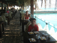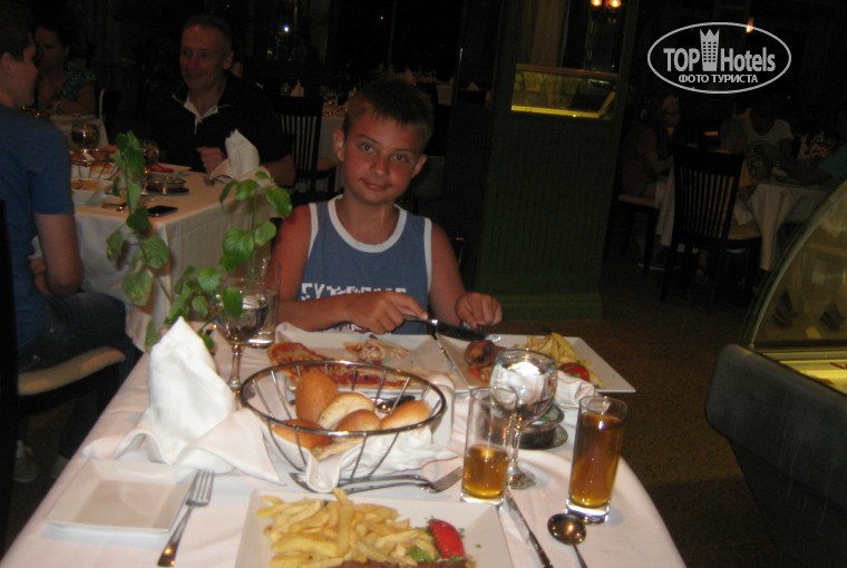 Питание оказалось вполне нормальным. Рыба, мясо, как писали в негативных отзывах, что напугали,что не жуется, а оно даже боковой стороной вилки разрезается и очень неплохое. Виноград всегда и если закончился то сразу приносят новую тарелку, арбузы, дыни, апельсины, бананы, салаты, сыры, круасаны, йогурты и т.п. даже были роллы. А в тайском ресторане такой вкусный салат и суп из креветок. Сын пошутил про добавку, принесли без проблем. В Итальянском ресторане обалденная курица гриль. В Гриль баре классные колбаски из баранины.