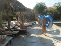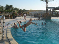 Аквапарк приемлемый. Были в Макади там 45 горок, но и тут вполне можно покататься. Мне нравилась синяя со спецэффектами внутри трубы, а сын с экстримальных не вылазил. Порезвились на искусственных волнах в бассейне. Волны включают в 15, в 16.30 после обеда, до обеда были на море и на горках Бича.