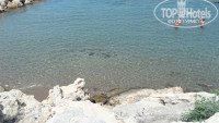 При отеле есть свой пляж — очень маленькая песочная бухта, в которой комфортно будет купаться тем, кто не любит глубину, и у кого есть дети. Однако, можно заплыть и подальше, и тут рекомендуем иметь пару плавательных очков или маску, потому что в камнях и на дне можно легко разглядеть морских ежей, разных рыбок, крабов и прочих морских обитателей. Если выплыть из бухты еще дальше, можно «ловить волну», чего нельзя сделать в самой бухте. Кстати, на «глубину» стоит заплывать еще и потому, что в месте входа в воду к вечеру после шторма приносит некоторое количество пластикового мусора и водорослей, что не наблюдается, если отплыть от берега подальше.