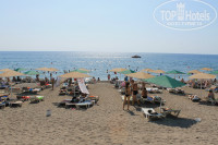 Пляж в 5 минутах ходьбы, лежаки без матрасов, но зто их много, на всех хватало. Вход в море - булыжники, но есть специальные просыпанные дорожки для входа в воду. Так что купаться без проблем даже без резиновых тапочек. Из минусов - на пляже нет бара от отеля. Приходилось покупать воду в палатках по дороге.