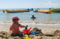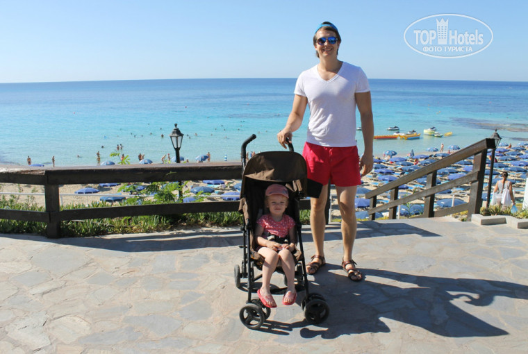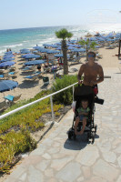 Пляж хороший, но маленький. Лежаки- зонты платные. Сидели все друг на друге. Вода хорошая. Теплая. Но практически всегда были волны. После обеда не плавали. В Воде постоянно куча лодок. Пахло топливом иногда. До моря нужно спуститься. Это нормально. Но вот обратно идти очень тяжело. С сумкой, коляской. В жару. Мы очень отекали. Икры разбухали так, что нога выглядела, как труба. Везде одинаковая в размере. При чем мы оба спортивные люди. Не выпиваем. Нам было тяжело. Познакомились с украинкой, она работает в ювелирном магазине, живет там 12 лет, очень худенькая, но тоже говорит- отеки регулярно. Такой климат. (((