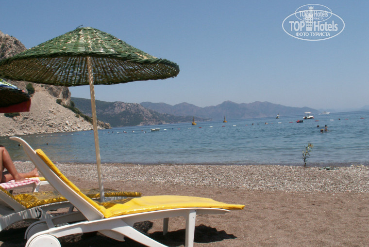 Сам отель находится почти на вьезде в Турунч-очень удобно,на главной улице но не на оживленном участке,так что относительно тихо.Номера просторные,простые, но все что нужно есть- за холодильник,телевизор,кондишн,сейф(правда наш унесли перепрограммировать и так и не принесли обратно,но мы обошлись) доплачивать не надо.Мебель простая но новая,ванная тоже постая но все есть(только не поняли дизайнерского изыска-полка для туал. принадлежностей вне душевой кабины))).Убираются-по требованию.Надо идти на ресепшн и просить чтоб убрали.И лучше оставить чаевые)).Кормят-как почти везде в Турции.Простая турецкая еда.Без изысков но все вкусно.Четыре вида горячего,закуски,салаты.Пить-напитки типа Юпи,кофе,чай,шоколад,вода и напитки из бара-типа колы и спрайта, а также спиртное местного производства.Есть еще бар у бассейна-там часов в 15-00-17.00 бывает выпечка,маффины в основном.Завтраки простые-мюсли,огурцы-помидоры,хлеб,джемы,яйца,омлет,нарезки из сыра и колбасы,жареные колбаски.Пляж-своего у отеля нет пока что,но говорят на следующий год договариваются.Пока-платный в кафе.Платишь 5 лир за лежак или берешь напитки из меню и лежишь весь день.Внимание!-многие недобросовестные сотрудники местных кафе высмотрев белых туристов,пользуются тем что вы ничего там еще не знаете и могут брать по 20(!) лир за два лежака.Если с вас столько попросят-сразу уходите.Особенно этим грешит как раз кафе напротив отеля-"Яли" называется,только спустится вниз и вы там.Первых два дня с нас взяли по 20 лир,либо надо было "наесть" на 40(!) лир из меню.Когда с нас на третий день,другой официант,взял по 5 лир мы поинтересовались,почему плата ТАК отличается.На что официант позвал менеджера-тот,видимо стал защищать прежнего работника и сказал что да-у них такая цена.А бесплатные шезлонги ,если взять напиток "только для английских людей".Не желая тратить время и нервы разбираясь в этих двойных стандартах,мы просто ушли на другой пляж.Кому интересно-пишите,про все пляжи подробно напишу-где удобнее отдыхать.Советы по выбору номера-все просто,если вы пожилые люди или имеете маленьких детей то лучше пониже-в отеле красивая мраморная лестница,но лифта нет.Мраморные полы там везде-в холле,в номерах.Благодаря чему царит приятная прохлада.Но также,звукопроницаемость.Акустика просто удивительная-на первом этаже дверью хлопнули,на четвертом слышно)).Мы внимания не обращали,но многие чувствительны к шуму.Есть в отеле номера с видом на море,но их мало-пара штук на четвертом и три-четыре номера на третьем этажах.Но из других виды тоже красивые-горы,черепичные крыши и белые домики,поселок.На четвертом этаже также есть панорамная веранда-можно банально использовать как курилку,а можно любоватся обалденным видом на море и горы.Само место очень красивое-чистый галечно-песочный пляж,чистейшее море,горы.На торговой улочке есть и магазинчикии и, лавочки с сувенирами и масса кафе с живой музыкой и баров.Правда если вы тусовщики-то лучше в Мармарис-ездить далековато-мин 35-30 на долмуше(местная маршрутка) и немногим меньше на катере.Ехать по горному серпантину-нам нравилось,виды захватывающие днем, а ночью красиво мерцают огни.Но многих укачивает-тоже надо иметь ввиду.Автотакси до Мармариса едет каждые пол часа,катер-каждый час.На экскурсии забирает небольшая машина и пересаживает на большой автобус.Д