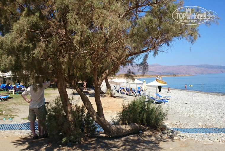 Первую неделю плющились, отдыхали. На море был штиль, вода прозрачная, чистая. Вторую неделю немного штормило, но в это время мы путешествовали на машине. Пляж галька, обычная галька, есть крупные камни, но не на берегу, по ним не будете ходить, пляжные тапочки за 8 евро в супермаркете через дорогу решат все проблемы, есть деревянная дорожка, настил прямо до моря (см.фото). Проблемы нет никакой. Дети купались больше конечно в бассейне, аквапарк классный, очередей никаких НЕТ. Круг резиновый для горки можно подождать пару минут, никто никуда не торопится. Мы обкатались вволю, не верьте никому, кто пишет об очередях - и это в пик сезона. Лежаков везде полно, мы, отправляясь на завтрак, кидали полотенца, всегда в 9 часов были места. На море, где стоят лежаки песок, целая стопка сложенных лежаков стоит неподалеку, места всем хватает. Про питание не буду писать, оно ОТЛИЧНОЕ. Только уточню моменты, которые указаны в предыдущих отзывах. Кофе на завтрак из огромных автоматов: и эспрессо и капучино и какао (несквик для детей), коктейли детские есть, делают в барах, мы брали двух видов, разноцветный и типа шоко коктейль - в какао добавляется шарик ванильного мороженного, очень вкусный и питательный. Пиво тут писали плохое, но оно не плохое, просто слабое, видели на бочках написано 3 градуса. Хотите более крепкое, как мой муж, купите в супермаркете, 1 евро где-то, может чуть больше, магазины есть и на дороге и на набережной (вечером там очень приятно гулять, живая музыка доносится из кафе вдоль моря, есть детские горки). Минут в 10-ти пешком большой супермаркет INKA, там продукты еще дешевле. Пиво в отеле наливаете сами, вино тоже. За коктейлем в баре постоять пару минут - это не очередь, как тут писали. И про очередь за пиццей читала, так вот, пекут ее три раза в неделю (очень вкусная), раздают в баре с 15.30 до 17.30, и если не хотите стоять в очереди, придите не в 15.30, а к пяти, никого уже не будет.