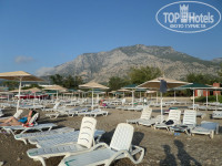 5) ПЛЯЖ. До пляжа идти 5 минут, это совсем не утомительно. Нужно идти по левую сторону от отеля мимо торговых лавочек. Пляж песочный , а вход в море каменистый, так что почти все сразу покупают резиновые тапочки для моря, наши за 5$). Наш пляж расчитан на 2 отеля- наш и еще один так же лариса, расположенный чуть дальше от моря, чем наш. Лежаки нормальные, зонты тоже, все бесплатно. На пляже находится человек, провожающий всех туристов других отелей с нашего пляжа, так что места нам всегда хватало.