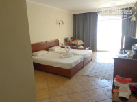 Настрой после чтения отзывов перед поездкой, сами понимаете был не очень. К тому же автобус трансфер был полупустой, а в Гармонию ехали только мы вдвоём... Приехали с сыном 8 лет в 23-00. За 10$+Аленка получили просто шикарный номер 5234 (оценил потом: рядом бассейны с барами, рецепшн, главный ресторан, по дороге на море). Вид на море, огромный номер, огромные 2 кровати, огромный балкон, деревянная мебель, отделанный удобный санузел, куча полотенец. Такого шикарного номера у меня ещё не было ни в Египте, ни в Турции. Довезли до номера на электрокаре, подняли чемодан в номер (1$). Естественно тонкости включения телевизора (оказывется надо как ламповый кнопку притопить и задержать), кондиционер включать (направлять пульт на панель управления на стене у туалета), сейфом пользоваться (нажимаете красную кнопку на ребре открытой дверки, потом код например 1414 и кнопку А = сейф можно закрывать поворотом ручки против часовой стрелки, загориться на мгновение красная лампочка. Открывать набираем код и потом кнопку А, загорится красная лампочка и ручкой по часовой бац - и сейф открылся :). Все премудрости сейфа понял, когда пришел настройщик (1$), увы при заселении инструкции не было.