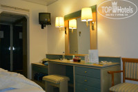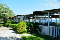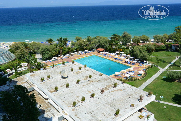 Начну по порядку. С размещением проблем нет. Приехали в 9 утра, пару часов погуляли по территории, которая кстати очень большая и просто бесподобно озелененная, и когда вернулись наш номер уже был готов. Брали номер на двоих с видом на море.Самый хороший вид на море из четных номеров.Убирались каждый день,хорошая местная оливковая косметика в номере-гель для душа,шампунь-кондиционер. В номере есть фен, даже телефон есть в ванной комнате рядом с унитазом,видимо если уж совсем припрет. Есть маленький холодильник, сейф( 7 евро на 10 дней) , телевизор, неплохая сплит система, очень удачно расположенная на мой взгляд, т.е на нас не дуло а комнату охлаждал как надо.