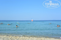 Пляж бесподобный, просто нет слов, море супер, каждый день чистят пляжную зону, шезлонги платные( 7,5 евро день) , мы не стали заморачиваться и брали с собой полотенца, зонтик на крайний случай можно купить в супермаркете.В бассейне кстати вода соленая, но в соседнем отеле с хлорированной водой, территория общая так что кому как нравится.!