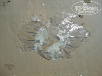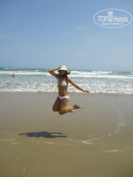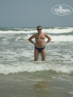 Пляж у отеля широкий, большой, но есть одна особенность – лежаки и зонтики стоят на возвышении и их всего 1 ряд (штук 15-20). Сделано так, потому что приливы очень мощные и все-бы уносило в океан. Океан… Сила и мощь ощущается сразу, но… Что-то не зацепил он меня сильно… Вода как в наших реках, серая какая-то… До глубины далеко до обеда, после обеда – уже нормально… В общем – ноги помочили и ладно… :)