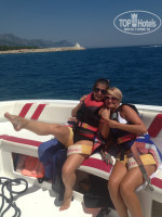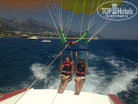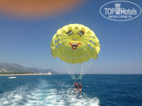 Для любителей экстремального отдыха на пляже есть водный спорт. Приятные мальчишки покатают на парашюте и водном мотоцикле, а морская прогулка с обаятельным капитаном Пупсиком Пашей станет для Вас не забиваемой. От себя хочу добавить: на парашюте стоит полетать это вовсе не страшно!!! Это впечатляет!!!