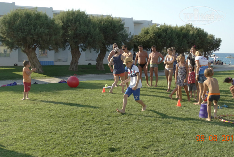 Досуг: дети заняты весь день, ходили и в нашу Библиошу и в англоязычную Сантолини, потом классные высотные и мелкие горки с бассейнами, но больше резвились на море, бассейны хлоркой отдают, есть хорошая детская площадка для малышей и пиратский корабль со всевозможными "лазалками" для старших.