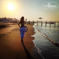 На пляж ездит с 8:30 тарантайка. До пляжа пишут что 2км. На самом деле там немного больше. Поскольку мы ранние пташки, мы не ждали тарантайку, а ходили до пляжа пешком. Шли 30-40 минут не быстрым шагом! Рассвет встречали по дороге)) в 7 утра мы всегда уже были на пляже. Море в это время чистое, на пляже народу нет совсем! Красота! И фотографировались в это время, когда нет людей и море не похоже на лягушатник. Пляж грязный. Лежаков всегда хватало. вообще у Белкона нам самый плохой пляж :D Но море все равно у всех одинаковое!