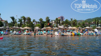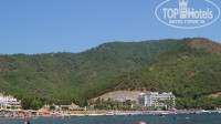 До пляжа минут 5. Ходили на пляж отеля Аква. На двоих за день платили 10 лир. Лежаки выбирали сами, какие понравятся. Пляжи в Ичмелере потрясающие. Все окружено горами. Вода прозрачная, чистая. Красота не вероятная.