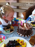 Все прошло хорошо, фрукты в номер нам прислали и деткам на стол в мини-клуб тож угостили :) и на мини-диско аниматоры поздравили и коктейль подарили :)) Салют, и прочую атрибутику брали из России..