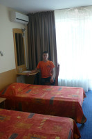 С Варны до отеля ехали минут 30. Разместили сразу же! Достался номер 705 (7 этаж), море видно. Отличный ремонт, всё чистенько, никакой живности не было! Балкон держали закрытым, т.к. соседи курили, мы пользовались кондиционером! Прищепки для белья по предыдущим советам брала из дома, действительно без них белье может улететь!