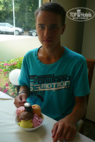 Питание: я не пожалела, что взяла "всё включено" - всего предостаточно! Позавтракали (7.30-10.00) мы до 8-9 и на море! Позагорали, покупались и в самый разгар солнца в отель на обед (12.30-14.00), поели неспеша и обратно к морю; и ужин (18-20 ч.). Ребенок доволен, мороженое ежедневно - можно 3 раза в день! Напитки с 12.30 до 20.00. На мой вкус: вино красное отвратительное, белое - так себе, а пиво вкусное! Есть и водка - я не пробовала!