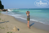 Выход на пляж: 1) можно из отеля сразу налево через отель "Преслав" (мы ходили буквально через отель, в переднюю дверь заходишь и в заднюю выходишь); 2) из отеля направо - через Ривьеру - там шлагбаум и охранники, кто-то из них легко пропускает и даже не смотрит(поэтому спокойно вперед, как-будто у вас всё уже оплачено), ну а кто-то просто отправит вас на 300 метров вправо или влево - заходы на свободные зоны. Мы с сыном ходили по разным пляжам, свободные зоны есть везде, подстилка продается всюду за 8 лев.
