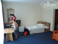 Ездили с сестрой, каждая со своим ребенком (7 и 3 года). С 30 июля по 6 августа. Персонал в отеле понравился, всегда помогали и улыбались, что не всегда встречали в кафешках..... Номер был по середине коридора, слышимости нет, только эхо ...т.к. открытые стены.....Или мы ничего не слышали....Мы брали только завтраки, но могу сказать что меню почти одно и тоже каждый день, но выбрать можно...еды достаточно. В другое время ходили по кафешкам, сразу говорю, берите порцию на двоих.... (в основном по 400-450 г) мы с сестрой брали так всегда.... Потому что в первый день мы заказали по салату...... а нам принесли порции, как мы готовим на стол для всех гостей.... мы просто выкатывались из-за столов.....Про отель, находится он на краю курорта, если вы едите с детьми - нет шума от центра и дискотек.... рядом отель плиска - там музыка играла почти всегда, у нас выходили она в сторону этого отеля (ночью чутка доносилась). В отеле можно арендовать коляску прогулочную, что очень помогает с прогулками по пляжу и торговым рядам, да и вообще просто погулять по курорту. Бассейн маленький, но там всегда было много людей после 11, т.к. на море уже было невыносимо...песок просто обжигал.... Рядом есть остановка общественного транспорта, можно съездить в варну или 1 остановку подъехать до аквапарка, но мы просто гуляли туда (дороги на курорте просто УЖАС, вся плитка разбита). До пляжа 7 минут через Преслав, вы сразу же выйдете к пляжу, но лучше прогуляться по пляжам ривьеры чуть левее, там и вода чистая и песочек мягче.