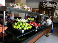 Передвигаемся в ресторан. Выбор еды огромный, на любой вкус (если вы не завсегдатай изысканных ресторанов). В обед выбор поскромнее, видимо по причине того, что много отдыхающих обедают на пляже. На ужин на улице всегда что-то жарят на гриле, каждый день разное: мясо, рыба, котлеты, яблоки в тесте, пончики, даже бананы. Так же есть детское меню. Большой выбор гарниров, макароны, рис, картошка, разные тушеные овощи. Очень большой выбор турецких сладостей. За весь отпуск только один раз долго искали стол, и один раз вилки. Все. Не думаю, что это много. Столы стараются убирать и сервировать заново оперативно.