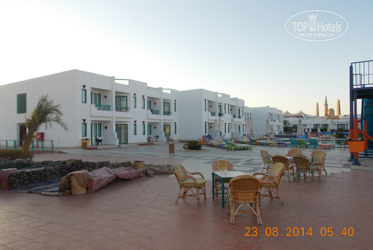 Общее впечатление об отеле-очень скромная территория,неопрятно,мало зелени,старый,грусный отель.Сам номер не плохой за исключением шипящего телевизора,уборка каждый день очень-очень шустренько и поверхностно.Питание-рис,картофель,курица,говядина,фруктов нет.Очень много отдыхает местных с семьями,кто видел как арабы кушают в столовой-тот не забудет это зрелище! Египетская сила! При всем уважении к людям другой культуры и веры-ну так нельзя себя вести! Брать путевку в Египет надо когда пост у мусульман и в пятерку. Пляж Хадаба интересный,хороший риф,хорошо делают массаж на пляже,полностью всего тела-отлично! Стоимость-20$,экскурсии брала по интернету,списывалась заранее,все прошло четко,Каир самолетом-190$. Цветной каньон+верблюды+голубая лагуна-40$, на такси ездили в парк отдыха Голливуд-вход 5$,и на променад Сохо-и там и там интересно,есть поющие цветные фонтаны,приятно погулять,провести вечер. Улица Наама Бей в шаговой доступности от отеля,но ее колорит на 2 раза пройти,потом навязчивость продавцов переходящяя в хамство и в пошлость отбивают начисто желание показывать туда нос.Продукты и манго покупала в магозина Карфур,его еще называют Пирамида.Фиксированные цены в местной валюте,чек на кассе,в торговом зала всегда подскажут консультанты-все четко. В любой поездке у каждого свои впечатления,но этот отель не рекомендую-там просто не комфортно.