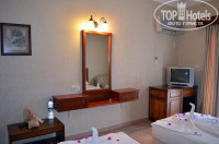 С аэропорта ехали 2 часа с остановкой. Заселили сразу. Номер сначала поразил запахом старой мебели, но потом проветрили и привыкли)) Уютный маленький номер с идеальной ванной и современным кондиционером. С балкона шикарный вид. Пляж маленький и большой идеальны - чисто, рыбки, крабы.. сплошное удовольствие. Питание нормальное, обслуживание тоже. Тихий отель, нет ни анимации, ни музыки - большой плюс. Ночью слышен шум трассы, но размеренный гул кондиционера глушит посторонние шумы. Цикады трещат круглосуточно, приехала домой и еще пару дней в голове трещало)) Гости отеля - 50% русские, остальные - немцы, турки, поляки, украинцы, словаки.. Отель рекомендую одиноким, пенсионерам, семьям с детьми, людям, стремящимся отдохнуть в тишине. Если вы едете в этот отель, то рекомендую взять шампунь (есть только гель для душа), маску с трубкой. Полотенца выдаются и меняются на ресепшн. Комаров практически не было, пищевые отравления не реальны. А вот от аллергии что-нибудь возьмите, сама на второй день покрылась сыпью, а потом замечала многих ,еще не загоревших)) с сыпью. Говорят, вода и солнце вот так вот влияет. Хороший, уникальный отель для спокойного и размеренного отдыха.