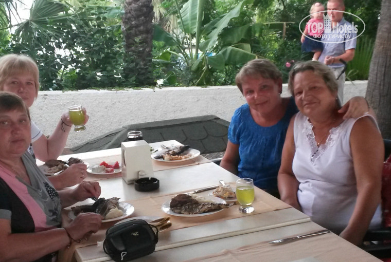 Да,в ресторане не хватало кондиционеров,поэтому всё,что с молочными продуктами было намешано - страшно было брать. Ела я огурцы да помидоры и салат иногда с луком...Подруга ела с йогуртом салаты и тоже никаких жалоб не возникло,наверное всё свежее было. В остальном всё вкусно. Особенно супы - я в восторге!!! Даже в пятёрках ультра всё включено не ела такой вкуснятины!!! Моему восторгу не было предела!!! :) Фруктов конечно мало,но их можно и на улице купить. А мы ездили в Кемер на базар и там всё купили. А так и индейка, и курица, и телятина, и баранина...Рыба костлявая,но вкусная... Сейчас бы с удовольствием её поела!!! Форель на гриле тоже была. Всё было: и макароны и рис и картошка...голодным остаться ну очень трудно!!! Сладости - все вкусняшки!!! Со столов быстренько всё убиралось - молодцы официанты! Девочки в баре удивили - никогда в Турции не видела такого,чтобы девчонки за стойкой были у бара!!!