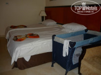 Дали нам номер Family room (2125) с тремя большими кроватями, и принесли детскую кроватку, которую я просила на ресепшине. В прихожей большой шкаф купе с зеркалами, ванна (которая плохо спускала воду) биде, туалет, все приличное, мебель не убитая. Вобщем номер нам понравился, правда вид на стройку и дорогу, зато тихо днем и ребенок спокойно спал. А, и еще балкона в этом номере нет, закрытая лоджия, в которой открывается одно окно.