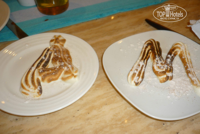 По поводу питания….. тут можно говорить бесконечно))в основной столовой еда то вроде есть, но не вся съедобная..были и овощи тушеные, и говядина и курица, рыба. 2 вида супа в обед и на ужин, салаты, макароны и картошка (ужасно приготовленные) даже 3 раза были крабы и кальмары(невкусные как по мне) и роллы нам 2 раза крутили, картошка фри иногда, сладости так себе, просто бисквит с кремом, мы их не ели, фруктов мало апельсины, яблоки и груши, голодными вы точно не останетесь, что нибудь на ваш вкус найдется, это взрослым… а вот детям беда!!!если ваш малыш не перешёл полностью на взрослый стол, берите банки из дома, моя дочка отказывалась практически ото всего, даже от простой яичницы, не знаю как они ее там готовят, но ей не нравилось, хочу сказать что дома у нас нет проблем с едой она ест все…там спасала только картошка фри, рис с подливой, хлопья, даже от булок ихних она отказывалась. Я вообще не понимаю зачем отель заявляет, что у них есть «детский стол» ??!это просто смеху подобно!!!каждый день и на обед, и на ужин сосиски непонятные и картошка с кожурой! Хорошо хоть что есть детский уголок с телевизором на котором показываю мультики, правда один и тот же, и диск уже тормозил, но все же, пока детки заняты можно спокойно покушать. Официанты это просто кошмар! за все 14 дней к нам не разу не подошел официант и не спросил что мы будем пить. Один раз мама попросила белого вина, так он принес его когда мы уже практически поели и то красное, на что мама сказала что она просила белое, он просто подвинул ей бокал, типо пей что принесли!!! сервис там отвратный, но об этом позже. Итальянский ресторан это одно название! пицца жесть, ничего хуже я не ела, Итальянцы бы повесились еслиб зашли туда))но с другой стороны, это Египет, если хотите вкусно приготовленную еду на шведском столе, то вам не в эту страну. Вобщем в «итальянском ресторане» выбора меньше, но за то официанты приносят тебе напитки сразу. И нет таких гигантских очередей за едой как в главной столовой. Поразило еще отсутствие на столах одноразовых салфеток, так что запасайтесь влажными салфетками (особенно мамочки) те салфетки которые лежат на столах если они чистые официанты могут просто встряхнуть и положить следующему гостю, и даже крошки со стола ей же стряхнуть(видела сама лично)