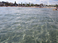Вода прозрачная, красивая.....по приезду была спокойная, а к концу отдыха начались волны...не