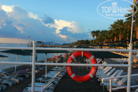 Отель расположен на берегу моря, имеет собственный, удобный пляж. Каждый вечер территория пляжа тщательно убирается, все шезлонги вымыты и аккуратно расставлены, приятно приходить рано утром и любоваться всей красотой море - горы и убранством пляжа.