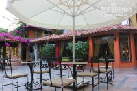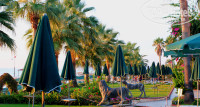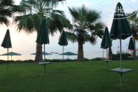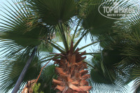 Территория отеля ухоженная, красочная и очень зеленая. Подстриженные лужайки, на которых можно загорать. Если смотреть на отель со стороны моря, вы не увидите на всем побережье такого количества зеленых пальм.