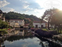 Территория отеля большая, за неделю нам нисколько не надоела. Хорошо зонирована. Есть зоны с "деревенским" пейзажем, прудом, утками и курочкой, зоны отдыха с гамаками, зоны с современными виллами, спортивные зоны. Ландшафт и планировка отеля радует глаз. И да, очень много мест, где можно поесть (фудкорты, кафе, бары, дом мороженого). К сожалению, не удалось попасть в рестораны а-ля карт, ребенок рано засыпал, мы не успевали.