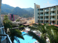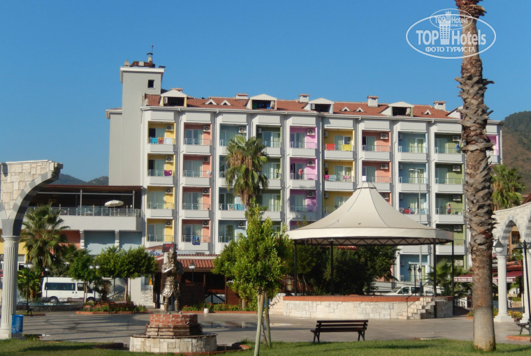 Отдыхали в данном отеле с 13 по 27 сентября. Отель очень понравился. Приехали в 8 утра, заселили в начале одинадцатого. Номера без наворотов, но всё необходимое есть, всё работало. У нас было три номера и все три были с видом на бассейн. Уборка номера нормальная, оставляли по доллару и пару шоколадок. Питание в отеле очень хорошее, всё свежее и вкусное. Голодными никогда не были, и конечно привезли лишние кг с собой. Персонал весь приветливый, никакого хамства, даже бармен Мартин, который многим не нравился ( по отзывам ) хороший парень. Море просто шикарное, волн нет. Ходили на пляж отеля Аква, 5 лир с человека на весь день. Русских очень мало. Экскурсии брали у Бориса, очень всё понравилось. Ездили на Эгейские острова, Дальян ( поели голубых крабов ), видели черепаху, мазались грязью в родоновых ваннах, посетили турецкую ночь и на один день в Грецию на Родос ( не очень понравилось, этих денег не стоит, даже если брать на улице), посетили хамам. Ичмелер очень понравился, красотища. В Мармарис тоже ездили на маршрутке, но он более молодёжный, тусовочный городок, шумный. В Турции были и в Алании, Кемере, Сиде, но теперь решили, что если Турция, то только в Ичмелер. Отдыхом остались очень довольны, две недели пролетели не заметно, уезжать не хотелось. Спасибо всему персоналу! Всё очень понравилось!