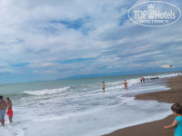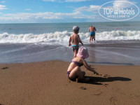 Море в наш заезд было чистое,никакого мусора,водорослей,как пишут некоторые туристы.Заход в море хороший,мелкая галька и песок.Дети спокойно заходили и купались в надувных кругах.В прошлом году были в Алании,вот там ноги повредить об гальку действительно можно,здесь же спокойно обходились без резиновых тапочек.