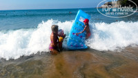 9. Пляж - очень хороший, но вот зонты вам придется самим брать-таскать и вкапывать в песок, причем глубоко они не вкапываются и при ветре падают-улетают. Конечно мужчинам наверно это не проблема, но пока я была без мужа с детьми - платила чаевые бич-бою и он сам мне приносил-устанавливал зонтик, и все равно при ветре он падал. не удобно. В общем, мне кажется не помешает пара линий стационарных зонтов или тентов.