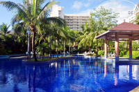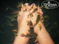 Выбрали отель «Yuhai International Resort Apartment Spa».А ныне Azure Resort Отзывов было много отрицательных – это меня настораживало, но все равно решили ехать. Про отель плохого не скажу, это обычная стандартная 4-ка. Территория ухоженная, зеленая, есть термальные источники – одно посещение бесплатно, если оно входит в стоимость тура. Довольно-таки интересно, порядка 10 ванн. В некоторых вода, наверно, градусов 40. В прохладных плавают рыбки, которые начинают тебя «обгладывать». Жена боялась за пальцы, а я за ноги. В общем щекотно.