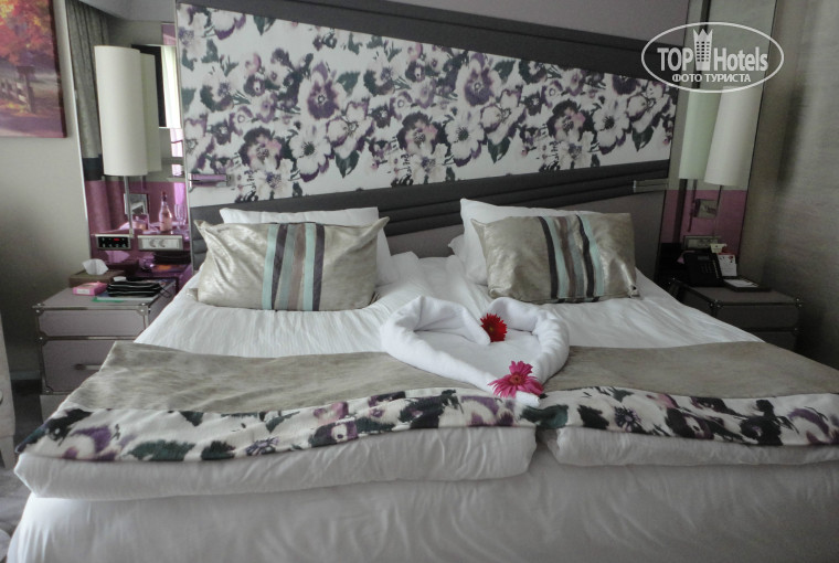 Начну с прилета в Анталию....Безусловным плюсом является то,что Rixos Premium Tekirova 5* организовывает трансфер для своих гостей без мучительных заездов по другим отелям . Ехали после бессонной ночи немного уставшие, но с хорошим настроением и ожиданием хорошего отдыха.В отеле встретили нас с улыбками ,лукумом .В отель прибыли в 8 утра в день моего рождения.Приятнейшей новостью было то,что вместо заказанного нами стандартного номера нам предоставили сюрприз в виде номера delux!Заселение по правилам должно быть в 14.00,но в 12.00 наш номер был для нас свободен.В номере нас ждала бутылка итальянского вина ,сладости и фрукты.Номер стильный,чистый,красивый и уютный ,ну как и сам отель оставляет самые приятные впечатления.Уборка ежедневно,качественно,шампуньки,гели,мыло,шапочки для душа,ушные палочки и ватные диски -это понятно,но зубные щетки и даже пилочка для ногтей......Минибар пополняется ежедневно,вода с газом и без,фанта ,кола,спрайт,пиво,соленая соломка к нему и даже желейные конфетки.Также есть чайник,чай,кофе.хоть мы чесно говоря и не пользовались ни разу,т.к. турецкий чай,кофе и т.д. и т. п. в любое время и в любом месте.Кстати,на -1 этаже есть замечательное уютное кафе со всякими булочками,печеньками,пирогами,пахлавой и всякими разными турецкими сладостями.Спиртое мы не особо любители,но наливают везде и в любых количествах.Большое количество A’la Carte,правда мы не посещали их и ничего не могу про них сказать,нам хватало еды в главном ресторане отеля.Еда разнообразная,а самое главное качественная,мясо разное,,морепродукты разные,раки,красная рыба не переводилась,суши.Меню детское ,кефирчики ,йогурты для деток ,кашки.Фрукты,сладости.Вообщем всего не перечислить,голодными точно не останетесь.Хочется отметить работу официантов.Только сядешь за столик-они тут как тут,сразу предлагают чай,кофе,соки,спиртное.Большой привет официанту Zeki Erdem!О,еще кому не хватает,то без проблем можно выносить из ресторана в тарелке что хочешь или в номер,или на пляж.Сами фрукты на пляж пару раз брали-никто слова не сказал против.Ресторан имеет террасы с видом на море,а оно ....лазурного цвета...А ,еще про пляж.На пляже полотенца берешь в любом количестве,таскать их за собой не надо и в обед работники пляжа собирают их на опустевших лежаках.Приходишь после,берешь чистенькое и отдыхаешь себе в удовольствие.Также можно взять солнцезащитный крем,ведерки ,пасочки ,лопатки для детей.Вода,спрайт,фанта,айран,мороженное,холодный чай.Есть места для инвалидов и спец.коляски.Также есть библиотека ,что очень удобно.Развлекательная программа по вечерам отличная.Вообщем писать и писать ,впечатлений много и все они замечательные.Вообщем,спасибо Rixos Premium Tekirova 5* и моему мужу за такой подарок!!!!!!!!!!!!!!!!