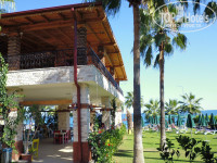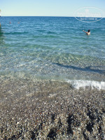 Теперь о хорошем. Главный плюс отеля –это его расположение на берегу моря. Правда, полоска пляжа весьма узкая, часть лежаков располагается на бетонной террасе и на отельном газоне. 2 лежака вместе нам не попалось ни разу, приходилось выискивать и перетаскивать, а один раз пришлось обосноваться на отшибе на ничейной территории (рядом с отелем есть недострой). И к 17:00 весь пляж уже в тени. Море чистейшее. Метра на 4 вниз видно дно и мелких рыбок, которых можно прикармливать хлебом. Единственное, не очень удобный заход в море, т.к. мелкая галька , а следом за ней камни покрупнее весьма ощутимы для голых пяток. А также метра 2 от берега спуск плавный, а дальше резко глубоко. Также можно попасть в море с лестницы на пирсе.