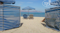 2 лежака и зонт+ ширма стоят 5 евро на день. А можно и на песочке свое постелить что-то) Возле бассейнов лежаков много, они все бесплатные.