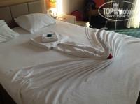 От аэропорта до отеля на автобусе примерно 1.5 часа, с остановкой на "перекур". По прибытии в отель (8 утра) нас вежливо встретили на ресепшене, оформили, но свободных номеров на тот момент не было. Попросили подождать, деньги "за хороший номер" брать отказывались (т.к в итоге оказалось, что реально отель был заполнен под завязку). Заселение как и везде происходит в 14-00, но обещали подготовить номера быстрее.