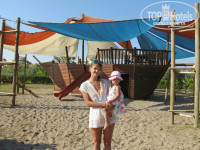 Пляж первые дни был грязный,но после половину расчистили и стало конечно гораздо приятней.Для детей на пляже есть много игрушек для песочницы.